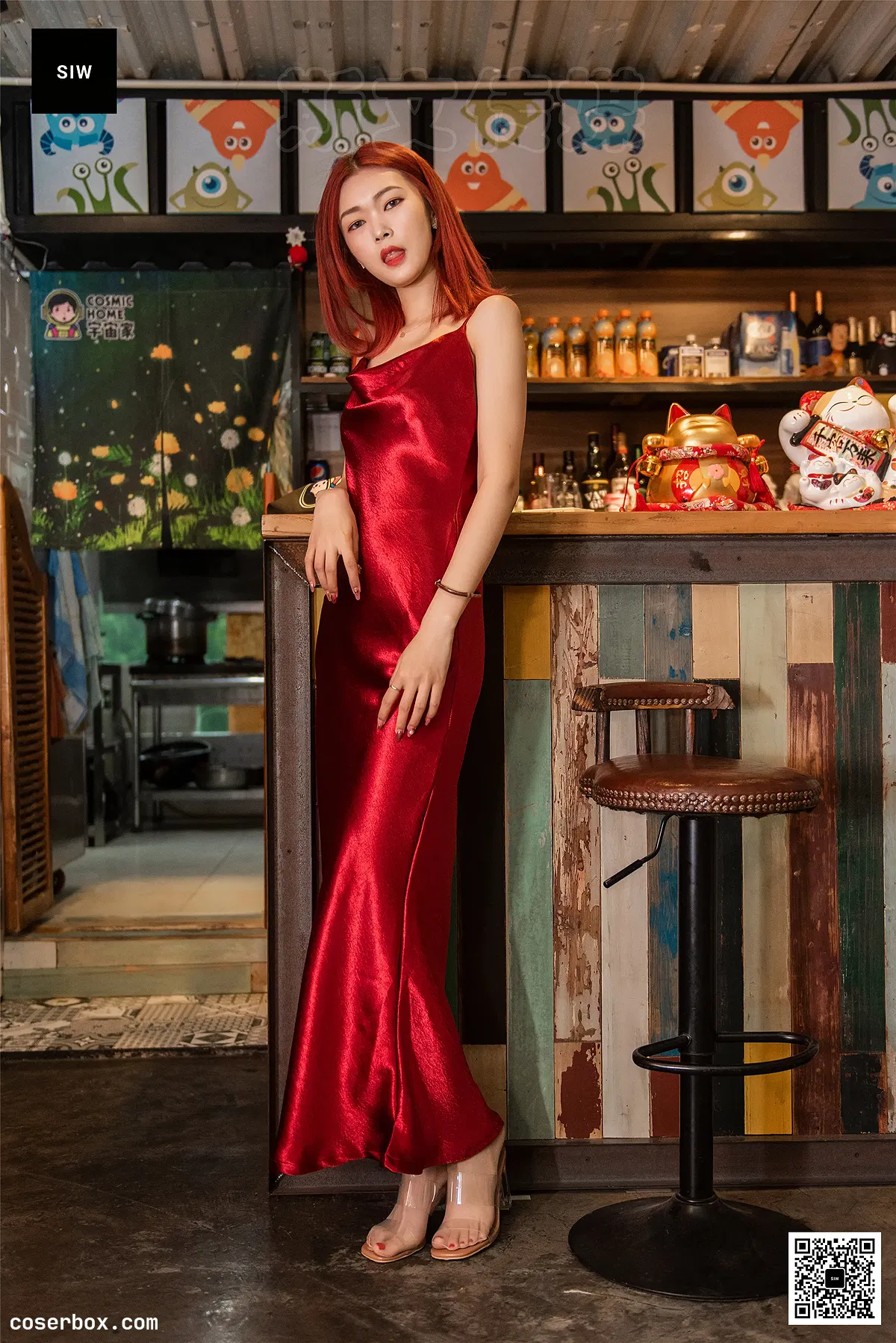 SIW斯文传媒 NO.008 复古奢华绸缎露背绑带缎面酒红礼服(悦悦) [60P 214.97MB]