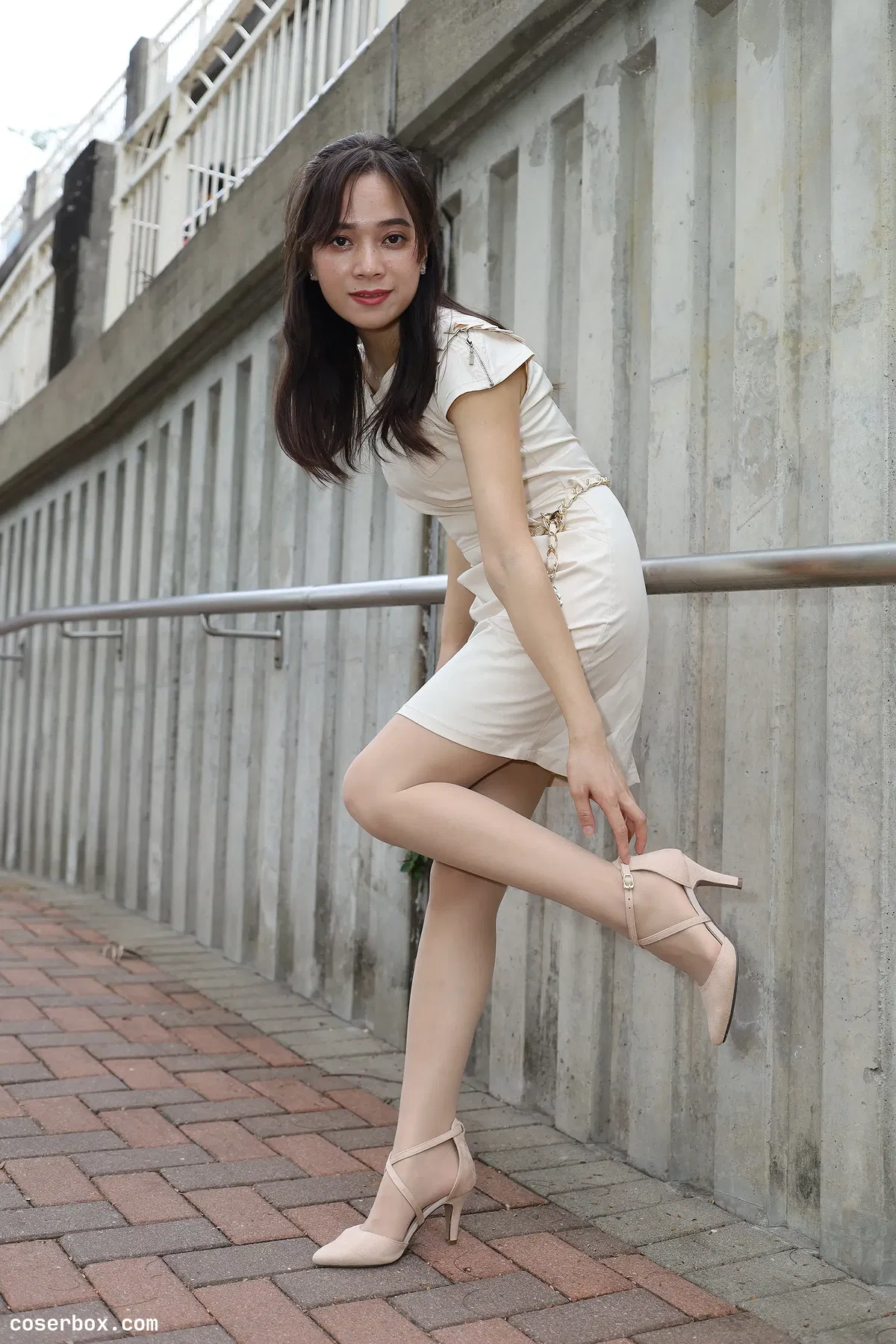 街拍丝足 NO.107 长腿美模 Vency Shen 米色连衣裙丝袜高跟美腿 [70P 136.4MB]